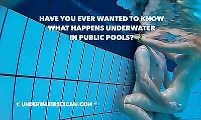 Real couples have real underwater hookup in public pools filmed with a underwater camera