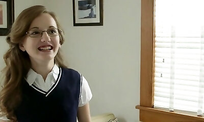 Innocent sister helps her brother and gets penis in her tight clean-shaved pussy! Taboo with a young school brunette