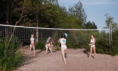 Two young wives who live next door in the same bedroom mansion are brought into the room and humped repeatedly!
