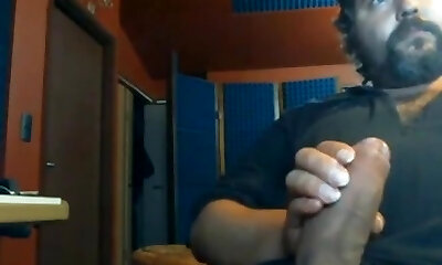 Gigantic hairy bear jerking a big cock in the chat